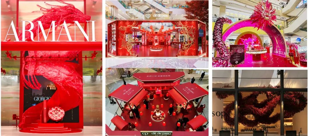 每年春節(jié)都是美妝產(chǎn)品銷售的旺季,商家都會(huì)利用折扣和限定包裝來(lái)促進(jìn)銷售;今年很多美妝品牌的中型柜臺(tái)也精心布置了春節(jié)裝飾,商場(chǎng)內(nèi)一片紅火,“龍味”十足。