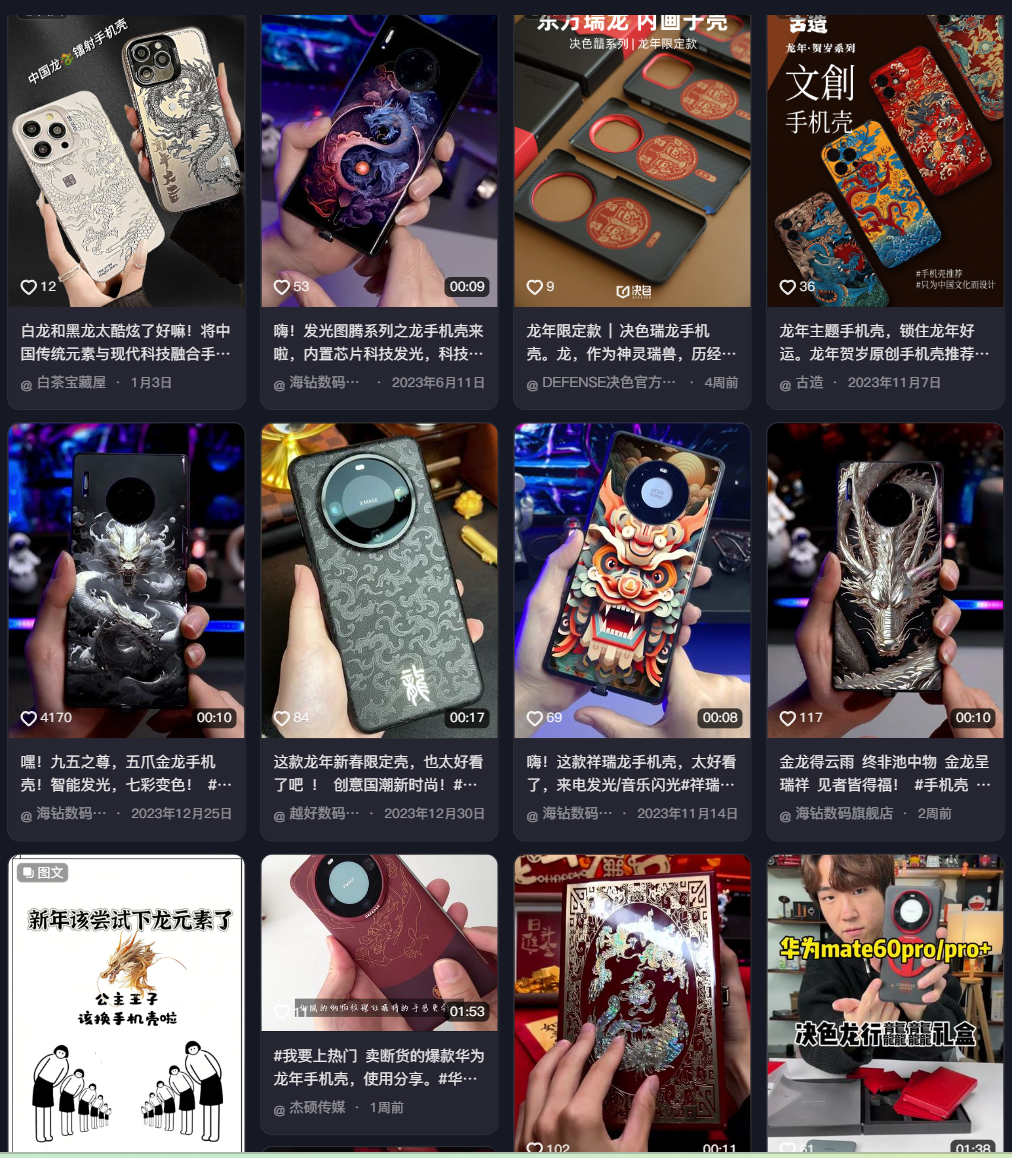 ③國貨、國潮、國韻產(chǎn)品持續(xù)受寵。2024,“龍”元素潮流新品倍受歡迎,當(dāng)仁不讓地成為今年春節(jié)的新“頂流”,龍年的福字對聯(lián)、臺歷、龍寶寶毛絨玩具、龍年紅色內(nèi)衣、龍年中國結(jié)掛飾成為最熱銷的春節(jié)周邊商品前五名。
