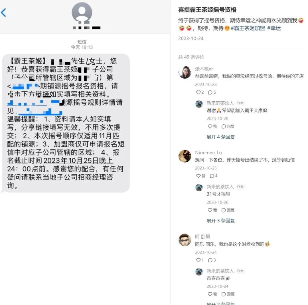 在社交媒體上,霸王茶姬加盟成了新晉流量密碼。不管是卡在加盟面試階段的候選人、剛剛拿到加盟資格的新手老板,還是手握多家門(mén)店的老手們,只要愿意知無(wú)不言地將霸王茶姬加盟過(guò)程寫(xiě)成小作文,隨手就是一篇爆文。