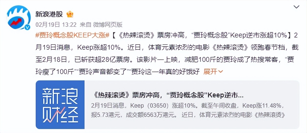 受此影響,有著“中國運(yùn)動(dòng)科技第一股”之稱的KEEP也受到了投資者的關(guān)注,其表現(xiàn)在消費(fèi)市場和資本市場均有體現(xiàn),還被不少網(wǎng)友戲稱為“賈玲概念股”。