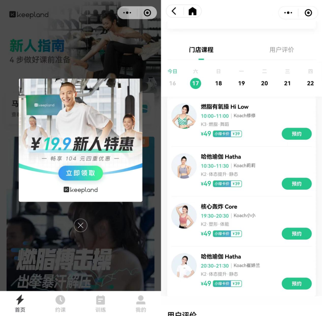 在新的合作模式下,線下健身房提供團(tuán)操課場地,Keepland負(fù)責(zé)提供團(tuán)課教練和課程代運(yùn)營,通過App給予流量支持,雙方合作經(jīng)營。初期49元的團(tuán)課價(jià)格,曾為Keepland帶來了不少客流;按照KEEP官方的公告,后續(xù)還將推動(dòng)與更多健身房合作,并提供涵蓋更多健身類別(如芭蕾舞及拳擊)的健身課程。