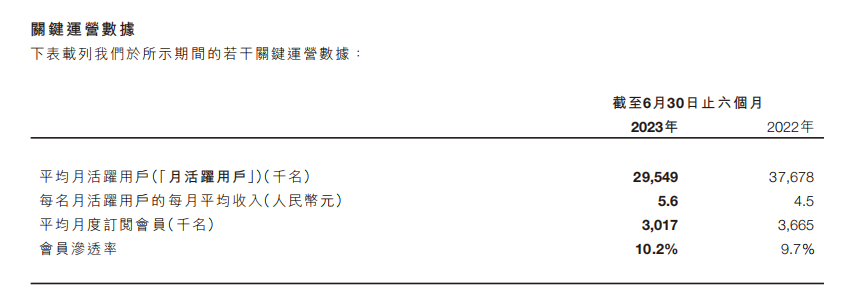 或許也正是因?yàn)檫@個(gè)緣故,Keep用戶的付費(fèi)意愿始終不高,根據(jù)招股書顯示,其平均月度訂閱會(huì)員,在2021年3季度疫情期間創(chuàng)下415.4萬人的高點(diǎn)后,就再也沒有增長過;到2023年半年報(bào)時(shí),已經(jīng)降至301.7萬人。