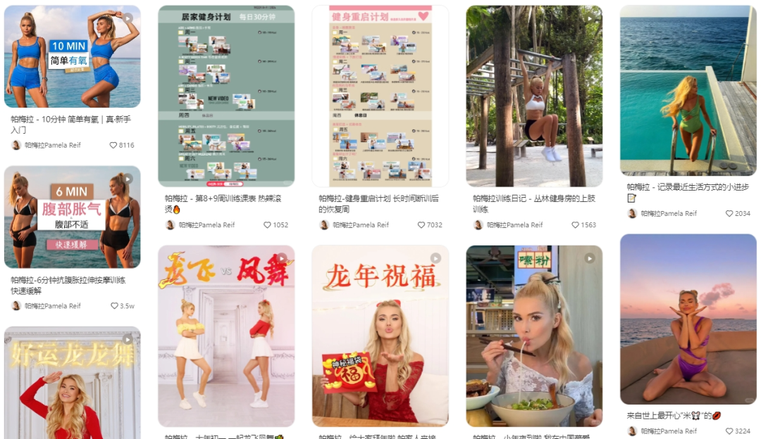 此外,按照Keep的合作模式,即便頭部KOL選擇了入駐,但所提供的內(nèi)容也很難保證“唯一性”。以Keep官方曾經(jīng)力推的健身超級(jí)IP帕梅拉·萊孚(Pamela Reif)為例,雖然也有部分“獨(dú)家課程”,但很多健身課程的視頻及圖文教學(xué)說明,在其本人的YouTube、小紅書等平臺(tái)都能夠免費(fèi)收看。畢竟相比抖音等動(dòng)輒日活七八億的平臺(tái),Keep能為KOL們帶來的流量和收入都非常有限。