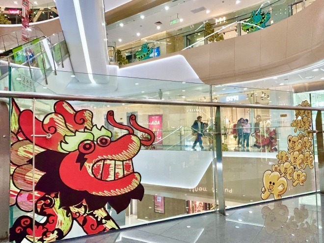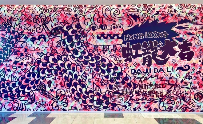 凱德虹口攜手80后漫畫家、波普藝術家魏一番,掀起一場“虹龍大吉”的新式潮玩藝術熱潮。一條色彩絢麗的巨大“波普龍”炸裂登陸正門廣場,吸引了無數(shù)來往路人的目光。這條自魏一番代表IP“仙龍掌”中衍生出的“虹龍”扎根虹口、期許未來,已經(jīng)成為龍年熱門打卡地標;▓@路、商場內(nèi)也出現(xiàn)了許多俏皮龍的身影,吉祥金色與喜慶紅色交織,為年味更添一筆濃厚氛圍。