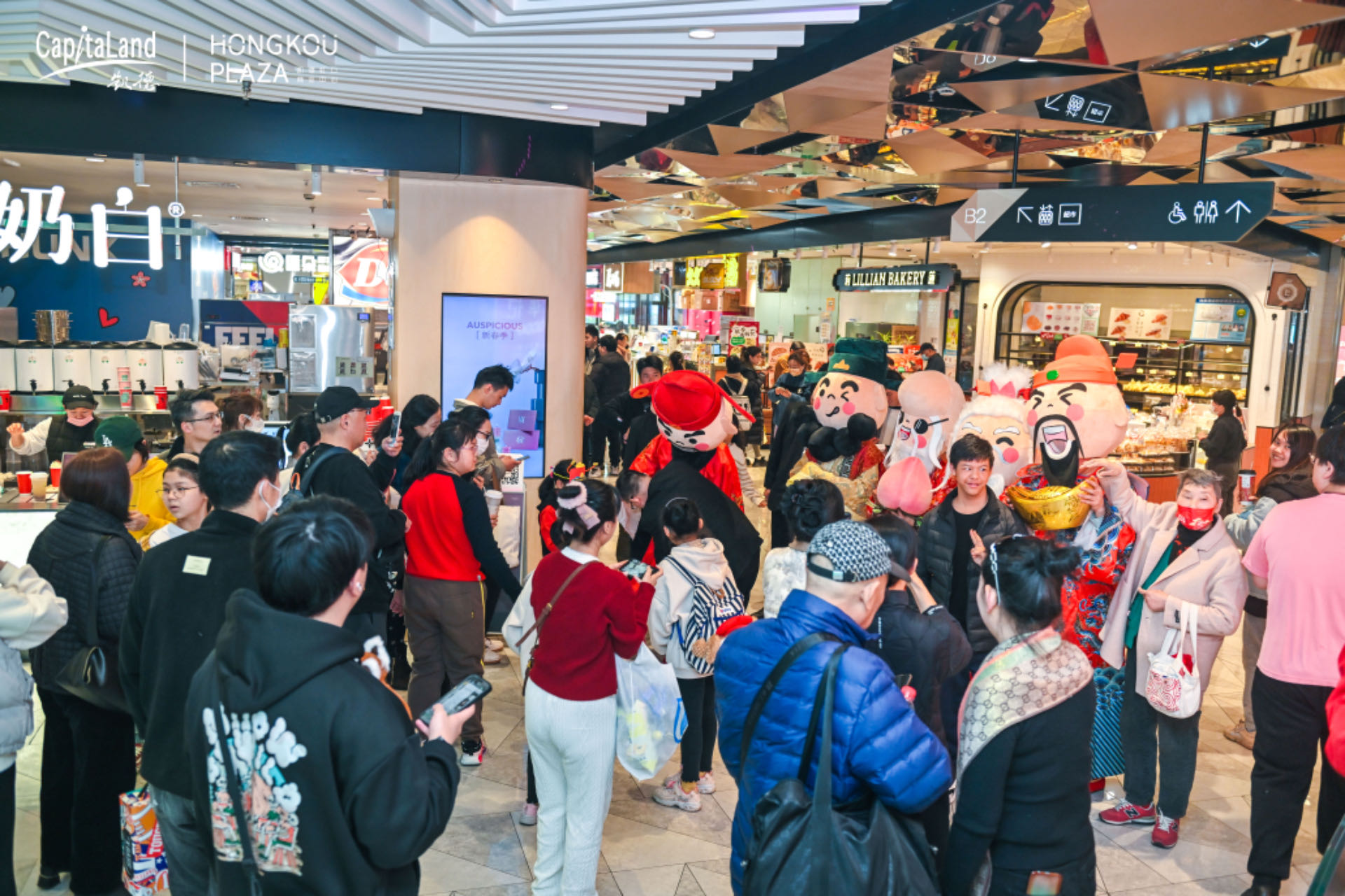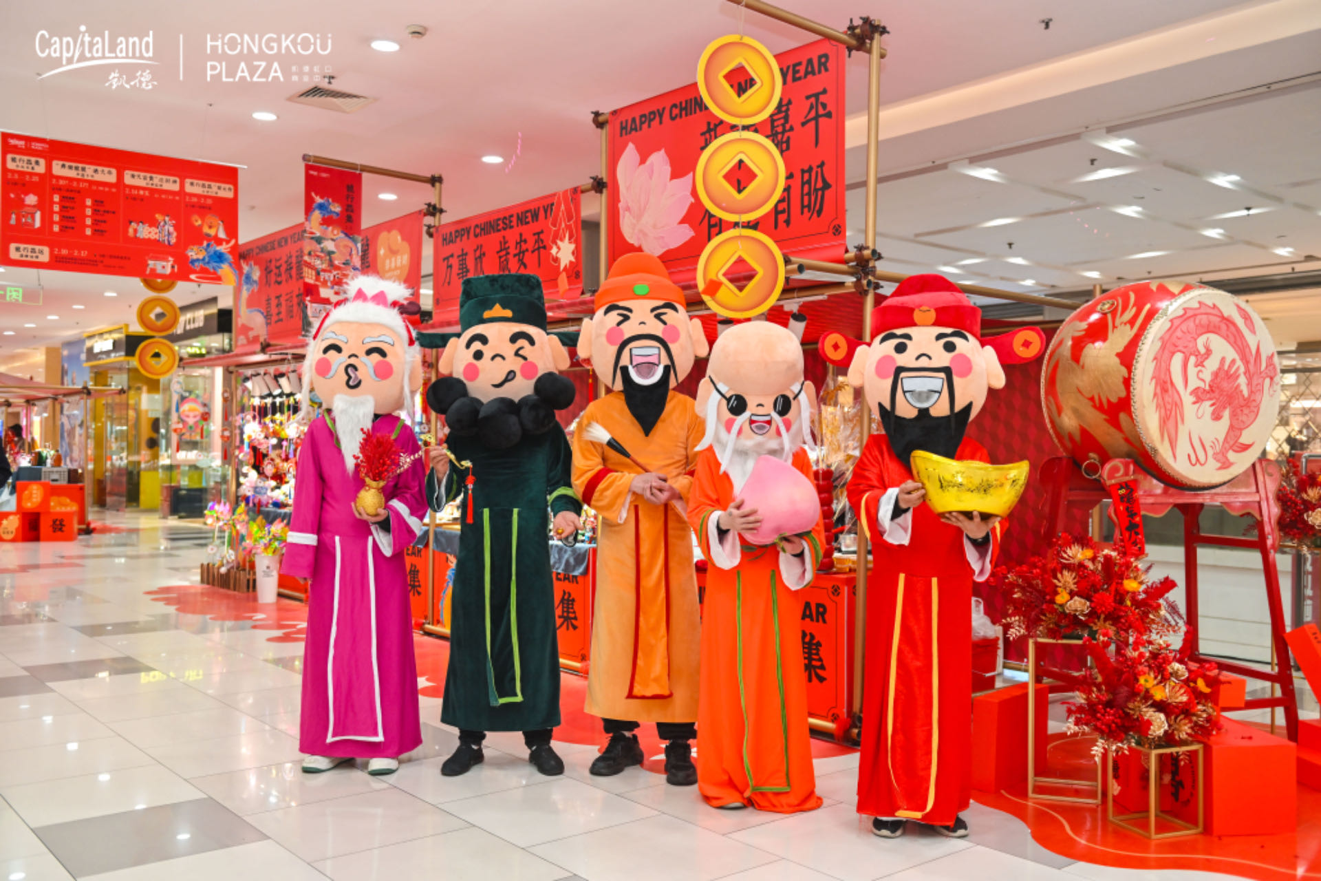 2月5號,【龍行龘集】熱鬧開市,市集上,做龍燈、吹糖人、捏面人、手作年宵花……兒時熟悉的年味撲面而來。市集還安排了從初一到初八每天一項非遺民俗活動,讓市民朋友們沉浸式體驗中華文化瑰寶的魅力。大年初五福祿壽喜財“五路神仙”在凱德虹口給大家拜年,新春氛圍其樂融融。