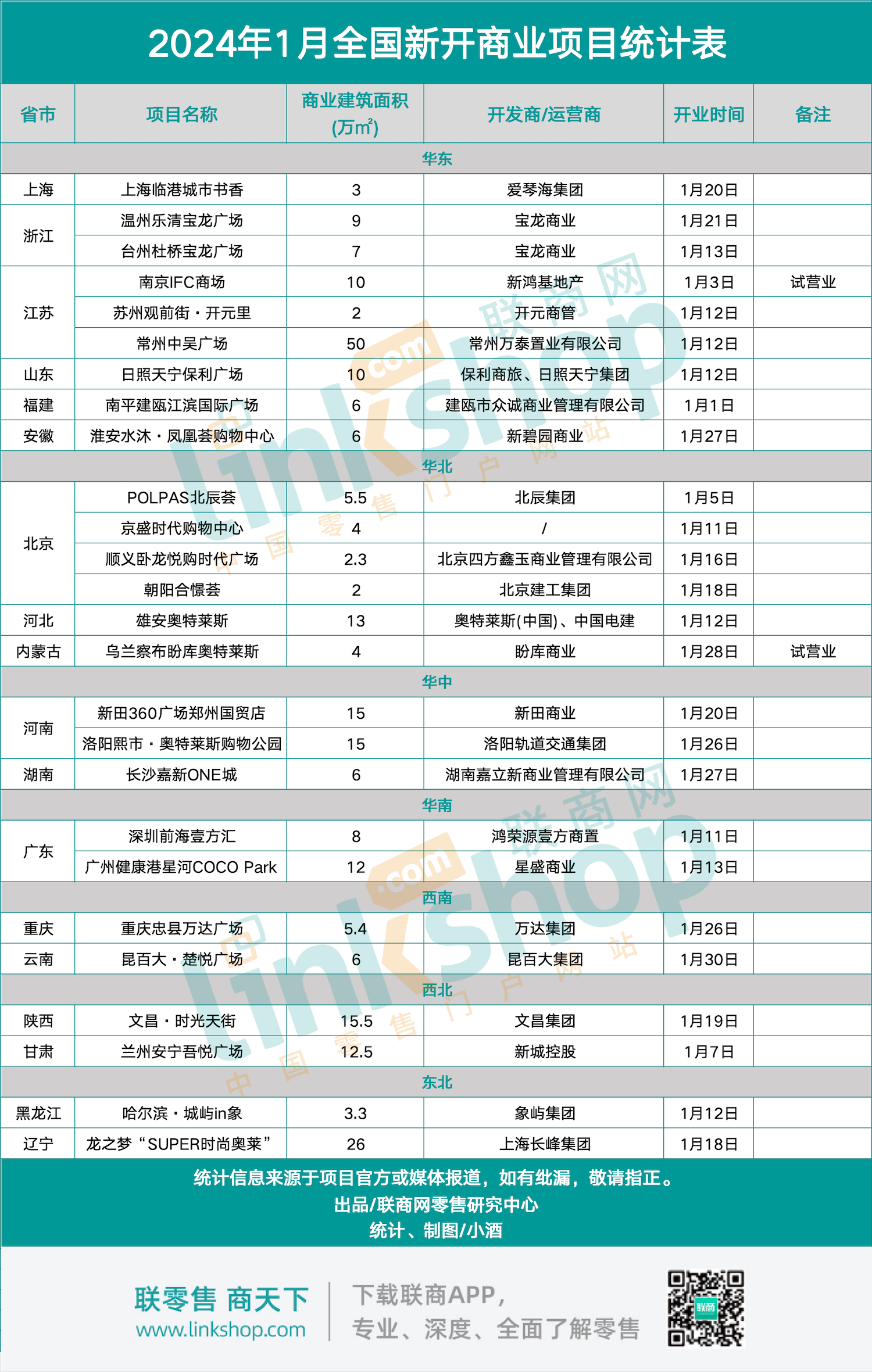 附:2024年1月全國新開商業(yè)項(xiàng)目統(tǒng)計表