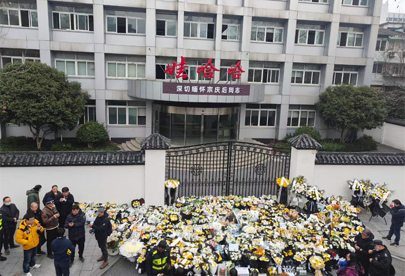 娃哈哈清泰街總部老大樓門口的悼念花束