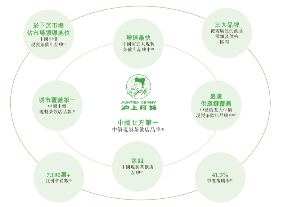 根據(jù)弗若斯特沙利文的報(bào)告,按2023年零售額計(jì)算,茶百道在中國(guó)現(xiàn)制茶飲店市場(chǎng)中排名第三,市場(chǎng)份額達(dá)到6.8%。2023年,茶百道門店的總零售額約169億元。