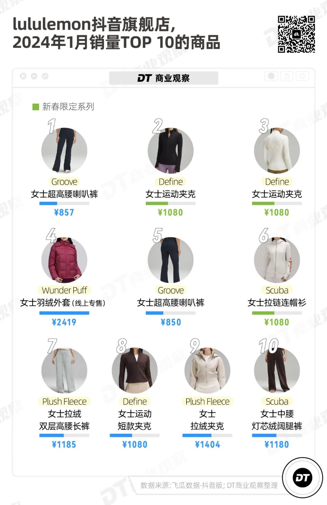 一個值得注意的地方是,lululemon在抖音的銷售額,并不是由瑜伽褲撐起來的。