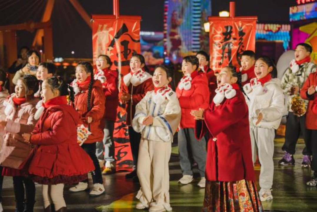 23日晚特邀江北區(qū)青少年合唱藝術(shù)團與江北區(qū)青少年活動中心的孩子們,唱響元宵。臉上的笑意與江畔的輝煌燈光相互輝映,繪就一幅充滿活力與魅力的夜景畫卷,將龍年元宵的喜慶氛圍推向高潮。