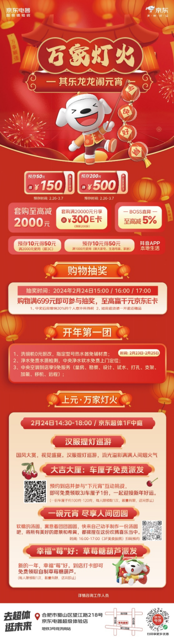 “目前,下元宵挑戰(zhàn)活動(dòng)已經(jīng)有超過(guò)20個(gè)消費(fèi)者在線(xiàn)上進(jìn)行了預(yù)約參與,我們也是非常誠(chéng)意的拿出參與即領(lǐng)3J車(chē)?yán)遄拥拿赓M(fèi)獎(jiǎng)品去回饋消費(fèi)者!本〇|電器合肥超級(jí)體驗(yàn)店?duì)I銷(xiāo)組負(fù)責(zé)人表示,還準(zhǔn)備了漢服提燈巡游,讓到店顧客感受流光溢彩的元宵節(jié)氛圍。