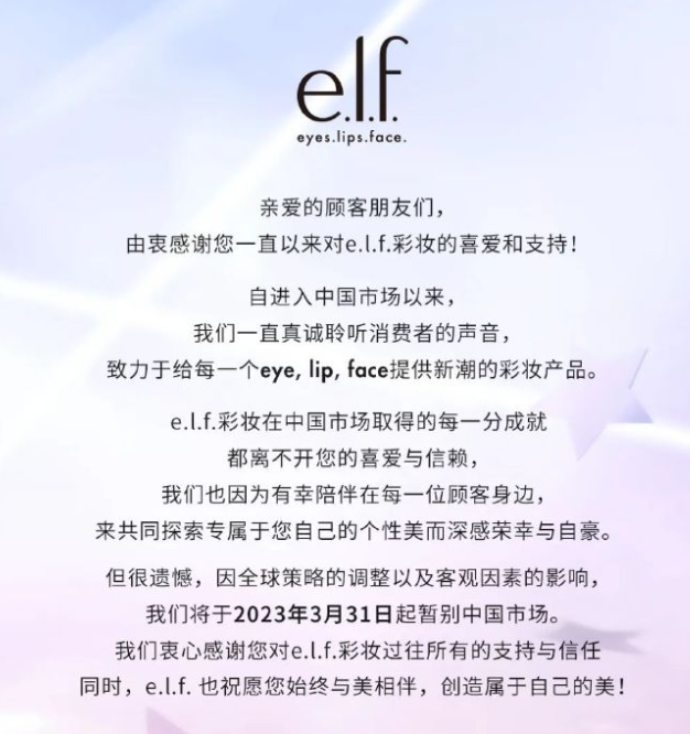 以平價(jià)出圈的e.l.f.也宣布退出中國(guó)市場(chǎng)