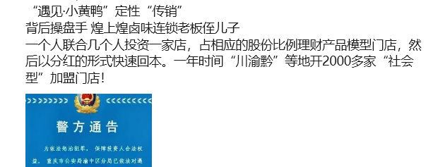 加盟騙局不罕見(jiàn),遇見(jiàn)·小黃鴨這樣非法集資的行為卻更惡劣。