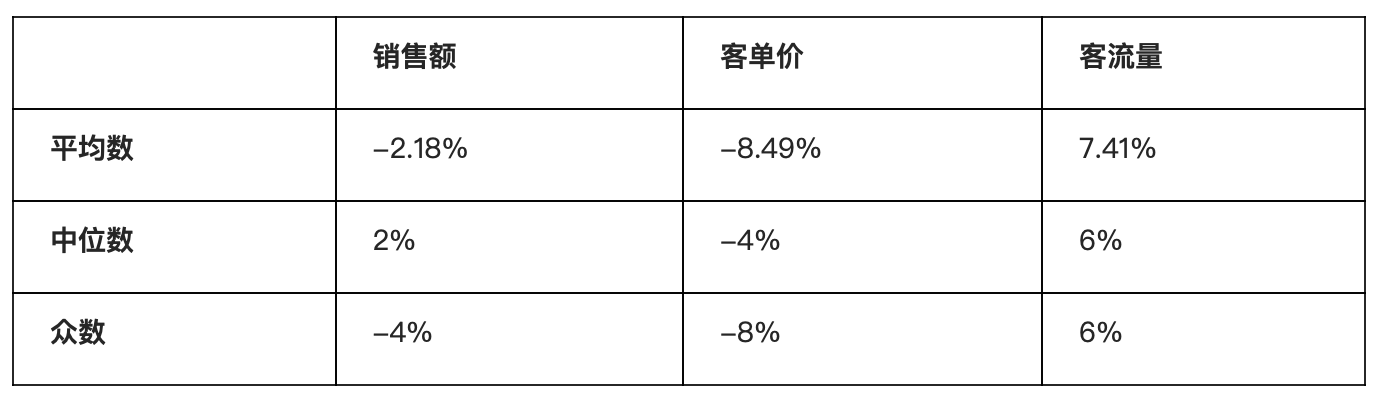1、客流普遍增加,但客單價和銷售額小幅下降。