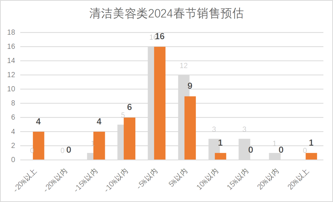洗滌紙巾類商品日常備貨較充足,節(jié)日屬性不明顯,且缺少活動,導致銷售低于預期。