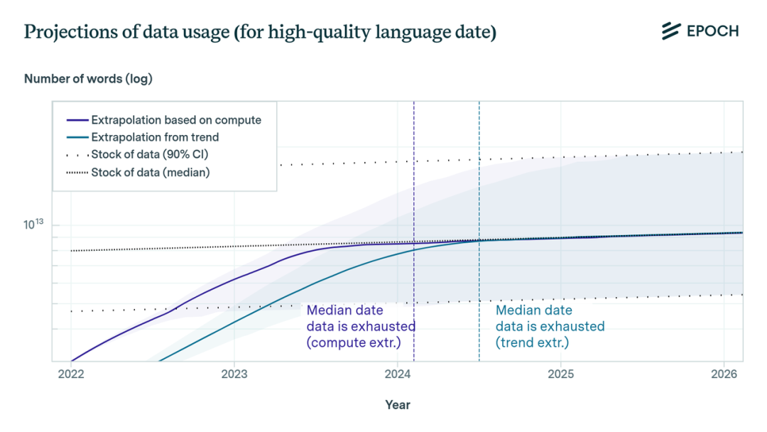 高質(zhì)量語言數(shù)據(jù)耗盡速度 ,來源:科技博主Dwarkesh Patel