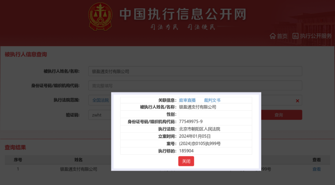銀盈通的執(zhí)行信息 來源:中國(guó)執(zhí)行信息網(wǎng)