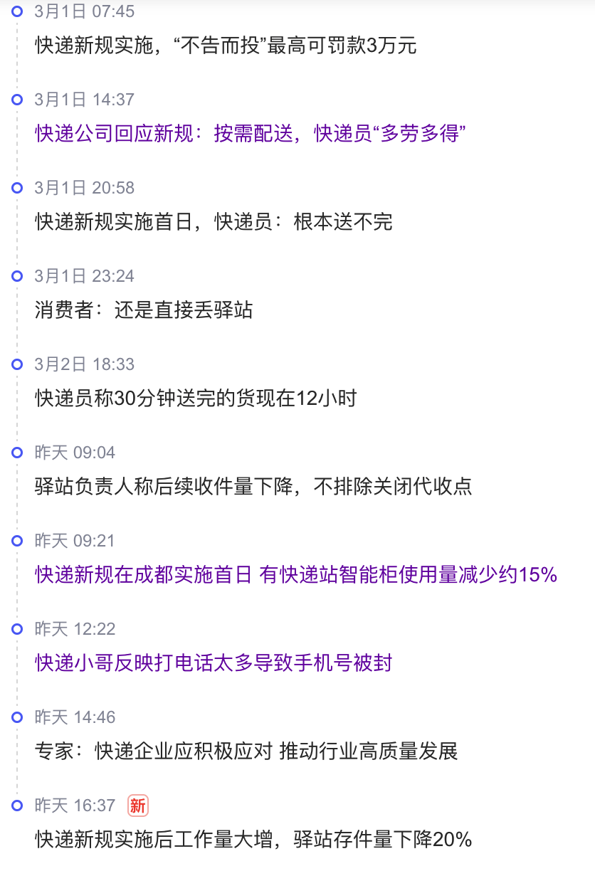 3月1日,《快遞市場管理辦法》正式施行。其中,第五十四條“未經(jīng)用戶同意,代為確認(rèn)收到快件,擅自使用智能快件箱、快遞服務(wù)站投遞快件,拋扔踩踏快件的,將根據(jù)情節(jié)嚴(yán)重程度,可能給予最高3萬元罰款”的規(guī)定,踩中了行業(yè)長期以來的痛點(diǎn),引發(fā)了社會各方的廣泛關(guān)注。