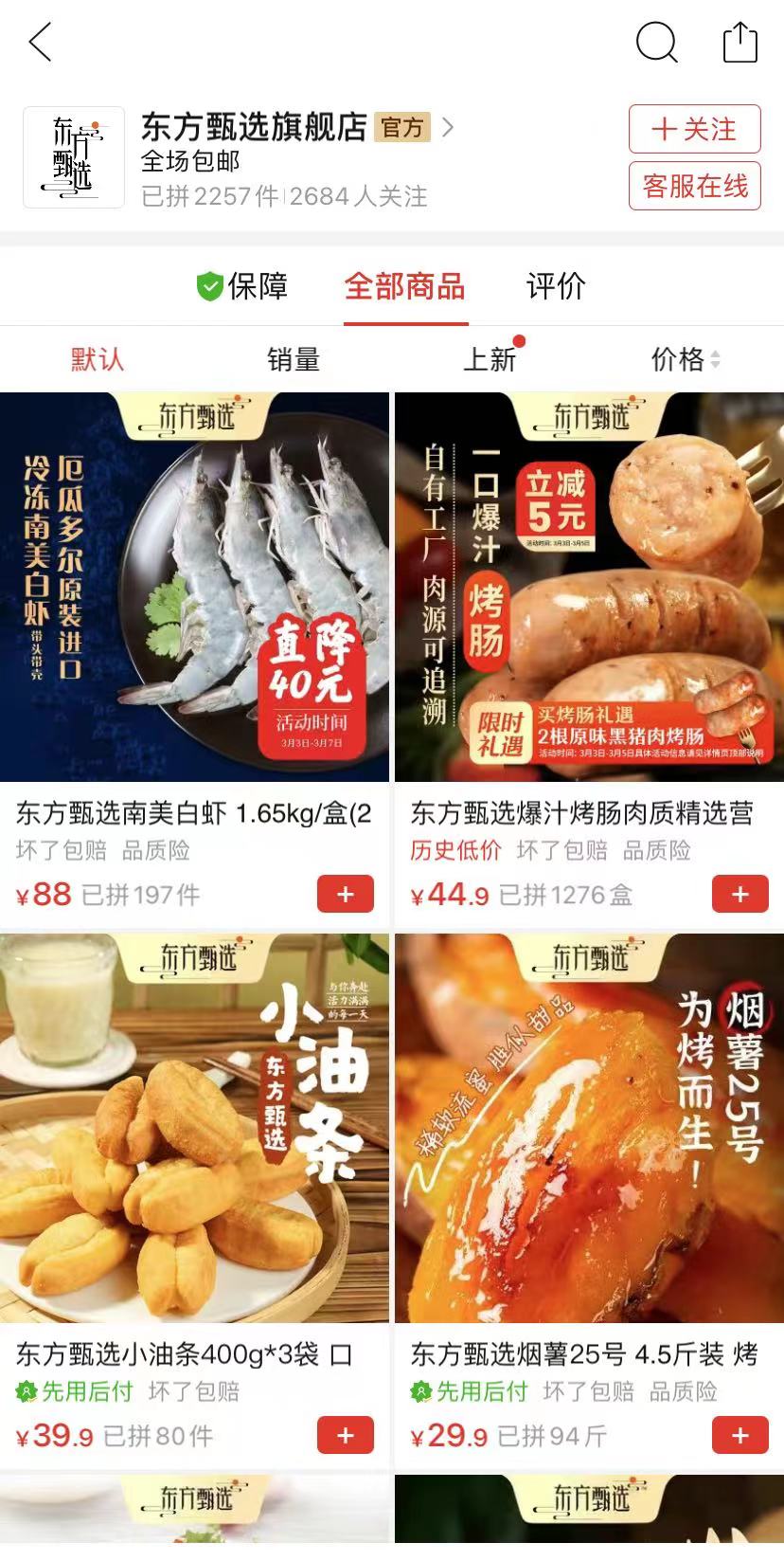 東方甄選入駐拼多多,客服表示產(chǎn)品和app相同