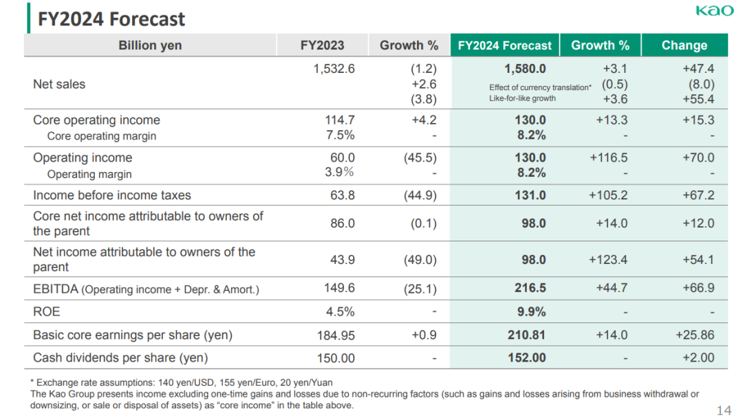 2023財(cái)年,花王集團(tuán)凈銷售額為15326億日元(約合人民幣733.8億元),較上年同比下滑1.2%:經(jīng)營(yíng)收入為600億日元(約合人民幣28.7億元),較上年同比下滑45.5%;凈利潤(rùn)為439億日元(約合人民幣21.0億元),較上年同比下滑49%。