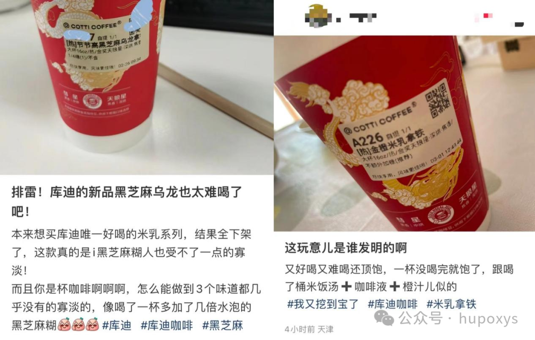 另一方面,還有一部分消費(fèi)者的抱怨主要集中在庫(kù)迪的產(chǎn)品上。部分沖著9.9去的消費(fèi)者,在嘗試了庫(kù)迪的產(chǎn)品后,在社交媒體上抱怨道“怎么做到3個(gè)味道都幾乎沒(méi)有的寡淡”“像喝了一杯多加了幾倍水泡的黑芝麻糊”“像喝了桶米飯湯+咖啡液+橙汁”......
