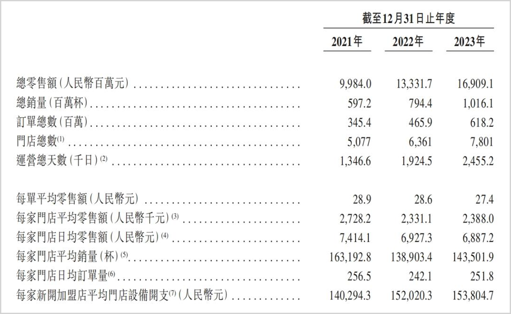 根據(jù)最近更新的招股書(shū),2023年公司實(shí)現(xiàn)收入57.04億元,同比增長(zhǎng)34.8%;凈利潤(rùn)11.51億元,同比增長(zhǎng)19.27%,仍然保持著較高的增速,市場(chǎng)份額從2022年的6.6%提至6.8%,行業(yè)排名第三,僅次于蜜雪冰城和古茗。