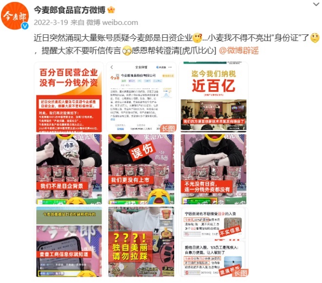 但2022年的315晚會,土坑酸菜問題使得今麥郎引火燒身。競品白象因為拒絕日資、招殘疾工,被網(wǎng)友捧上熱搜,銷量一度暴漲。而今麥郎接受過日資的老新聞被順勢扒出,瞬間陷入輿論紛爭。