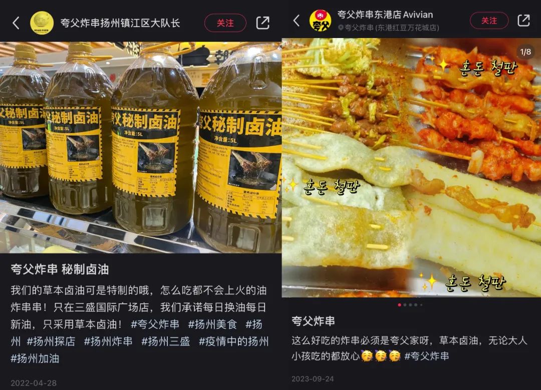 夸父炸串在不同的宣傳體系中積極向健康化靠攏,聚焦的正是油——運(yùn)用八角、桂皮、花椒等20多味鹵料,配合產(chǎn)于四川本地的“初榨菜籽油”提煉而成的秘制“草本鹵油”。