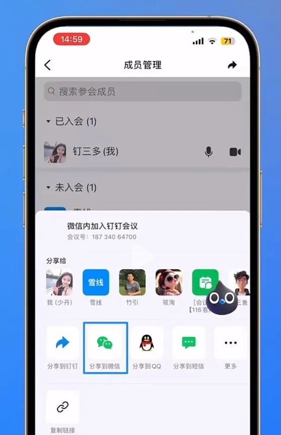 據(jù)了解,只需將釘釘會議的入會鏈接分享給微信好友,對方即可在微信內(nèi)直接進入同一場會議。首次入會需要手機號驗證碼驗證,后續(xù)再次入會可實現(xiàn)一鍵快捷登錄。