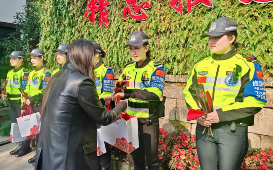 三八節(jié)前夕,杭州西湖銀泰百貨首支“西子義警”隊(duì)伍在杭州景區(qū)公安分局岳廟派出所成立,并跟隨景區(qū)公安景安女子機(jī)動(dòng)巡邏隊(duì)開展了首次“西子義警”服務(wù)。同時(shí),杭州西湖銀泰百貨給景區(qū)公安的女性民輔警和西子義警女性優(yōu)秀代表,送上了防曬禮盒作為節(jié)日禮物,帶去節(jié)日慰問。