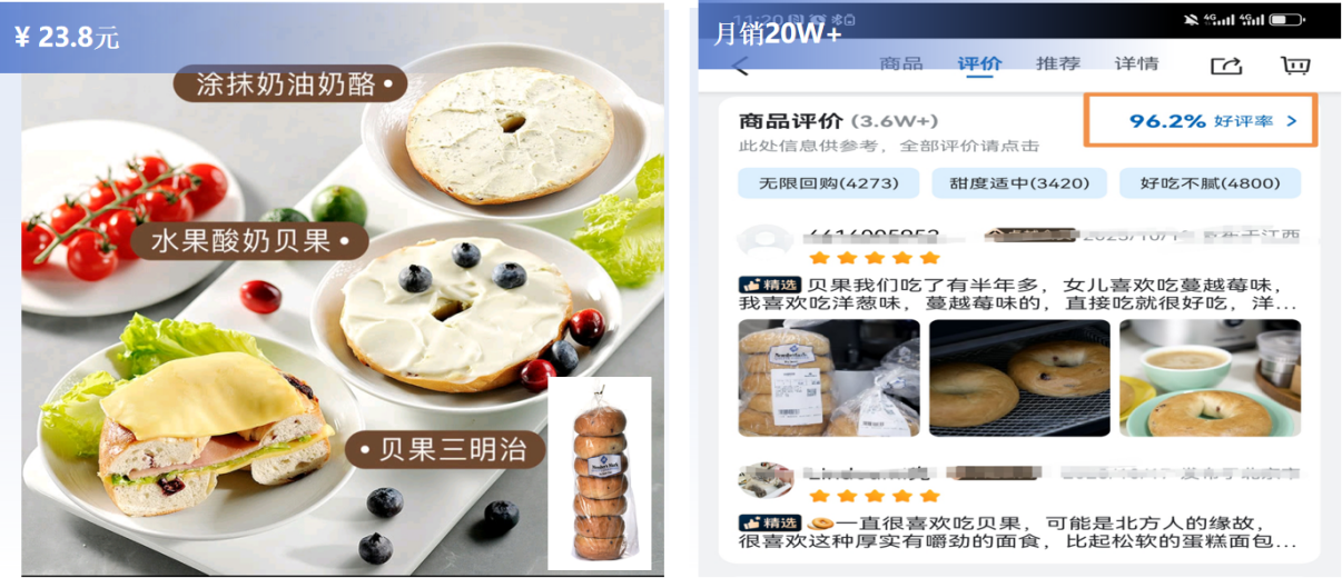 推薦理由:甜度適中,口感絕佳,用料貨真價實,7個貝果帶來踏實飽感,性價比高;適合用戶多種消費場景,是用戶的無限回購單品之一。