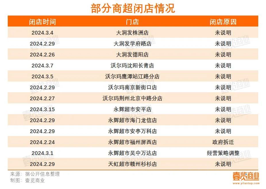 2月29日,沈陽沃爾瑪長青店突發(fā)公告稱,將于3月7日停止營業(yè);沃爾瑪荊州北京中路店2月27日停業(yè);沃爾瑪南京首店于2月29日起停止營業(yè);江西鷹潭沃爾瑪超市3月5日起停止營業(yè)。