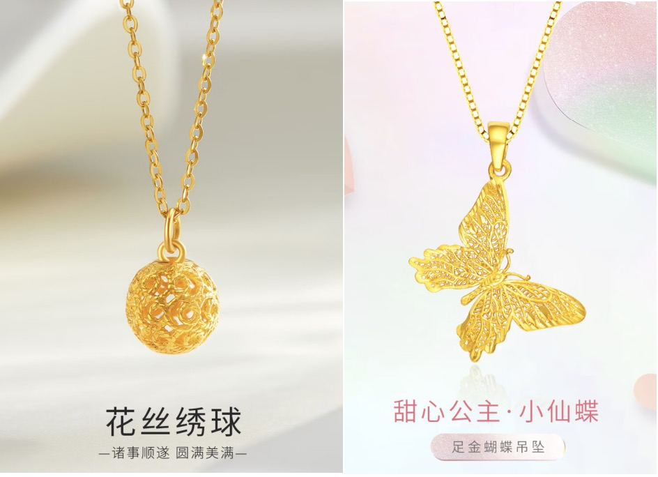 京東黃金珠寶采銷表示:“受三八婦女節(jié)的影響,近期手鐲、耳飾、吊墜等金飾格外受消費(fèi)者歡迎,尤其是采用了古法、花絲、多彩琺瑯等加工工藝的金飾,由于工藝精美、造型時(shí)尚,更是銷量節(jié)節(jié)走高!北热缰袊S金5G花絲繡球租金吊墜,玲瓏花絲自帶古典雅韻,圓形繡球寓意“諸事圓滿”。還有周大生小仙蝶足金吊墜,在細(xì)節(jié)處精雕細(xì)作,展現(xiàn)蝴蝶翩翩起舞的靈動(dòng)姿態(tài),仙氣十足,是節(jié)日禮贈(zèng)的優(yōu)選,近期在京東熱銷。
