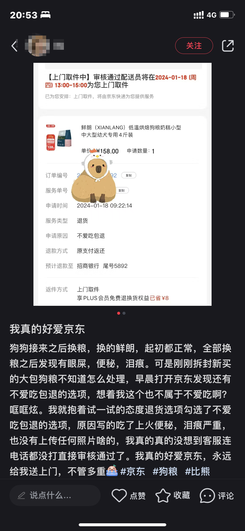一直以來,消費(fèi)者對(duì)于線上購買貓狗主糧的吐槽大多集中在“買了一大包,貓/狗吃了一口就不吃了,又沒地方放,又舍不得直接扔”。而為了解決這一難題,京東超市首創(chuàng)“不愛吃包退”服務(wù),以不會(huì)說話的寵物真實(shí)反應(yīng)為核心,將寵物“不愛吃”作為提供售后服務(wù)的標(biāo)準(zhǔn)。