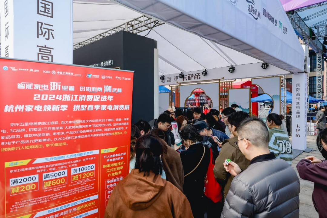 在“2024浙江消費(fèi)促進(jìn)年”啟動(dòng)儀式上,浙江省商務(wù)廳發(fā)布2024年浙江消費(fèi)促進(jìn)年行動(dòng)計(jì)劃,開(kāi)展汽車(chē)、家電、家居三類(lèi)大宗商品巡回展。拱墅區(qū)以本次活動(dòng)為起點(diǎn),正式開(kāi)啟“三月美麗購(gòu) 大武林商圈消費(fèi)券”活動(dòng),發(fā)放總額2000萬(wàn)的消費(fèi)券,以家電類(lèi)為主,覆蓋全品類(lèi),掀起了一輪線上線下的樂(lè)購(gòu)狂潮。