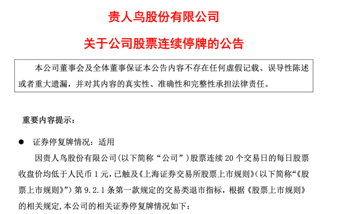 這也意味著貴人鳥(niǎo)將被「強(qiáng)制退市」。