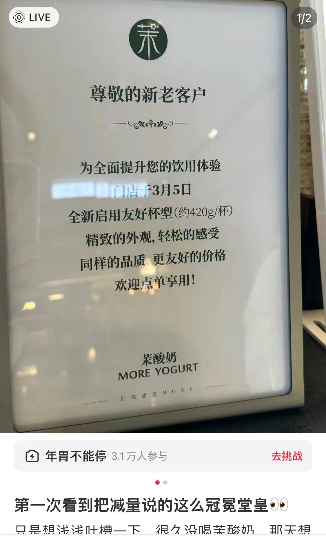 茉酸奶回應(yīng)“大杯變小杯”