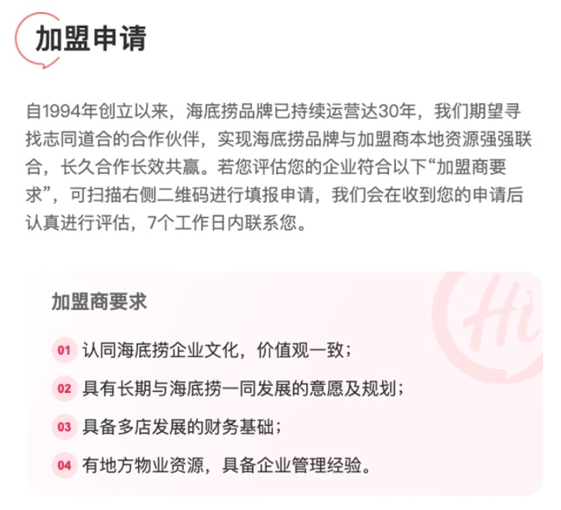 在海底撈對加盟商提出的要求中,第4點就提到需要有地方物業(yè)資源,具備企業(yè)管理經(jīng)驗。