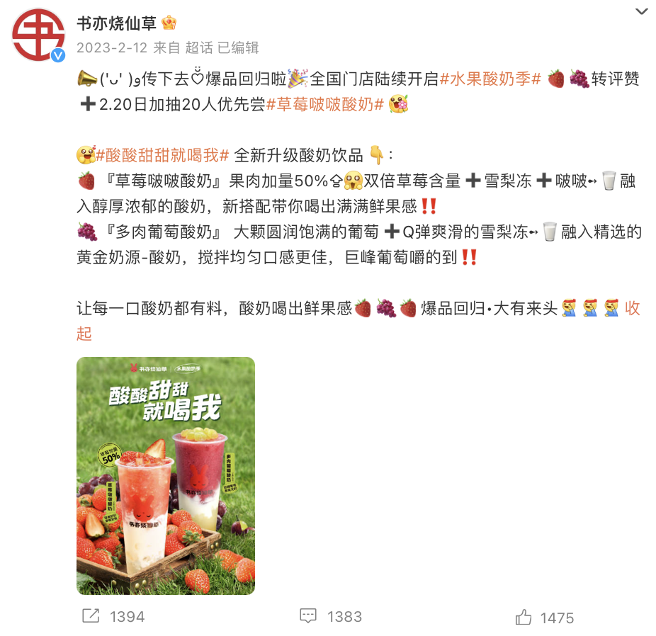 不過值得注意的是,在過去一年里,現(xiàn)制茶飲市場再度生變。古茗,茶百道、滬上阿姨緊追猛趕,爭奪新世茶飲第二股,行業(yè)內(nèi)卷升級,書亦燒仙草的聲量已遠不如前。