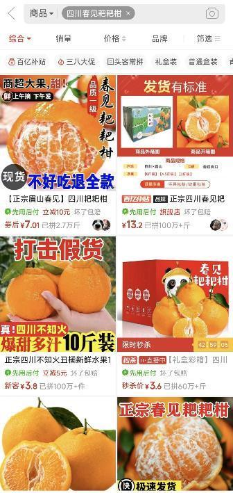 幼師胡越則分享起自己碰到的銷售套路,商家的宣傳頁面主圖上顯示“四川春見粑粑柑,空運(yùn)次日達(dá)”,下方標(biāo)注“限時(shí)迎新價(jià)3.6元”。點(diǎn)進(jìn)去購買才知道,3.6元是1斤品嘗裝的價(jià)格,另一個(gè)選項(xiàng)是10斤優(yōu)選裝,其價(jià)格為27.6元。