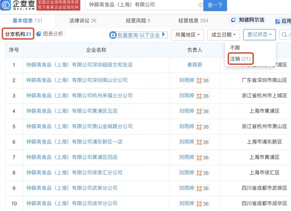 聯(lián)商快訊:近日,鐘薛高食品(上海)有限公司及其法定代表人林盛被限制高消費(fèi),執(zhí)行法院為上海市嘉定區(qū)人民法院。關(guān)聯(lián)案件流程顯示,此前,該公司已成被執(zhí)行人,執(zhí)行標(biāo)的81.81萬(wàn)元。此外,該公司旗下分支機(jī)構(gòu)已全部注銷(xiāo)。