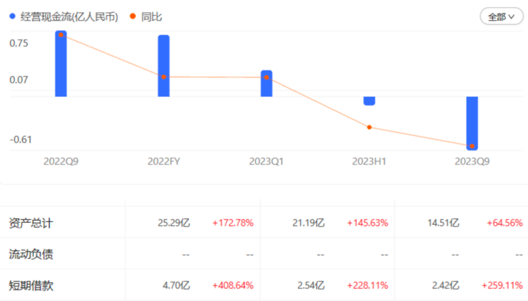 財報顯示,截至2023年第三季度,萬辰集團(tuán)的短期借款已達(dá)到4.70億元,資產(chǎn)負(fù)債率更是達(dá)到了74.86%,經(jīng)營性現(xiàn)金流為-0.61億元,入不敷出。