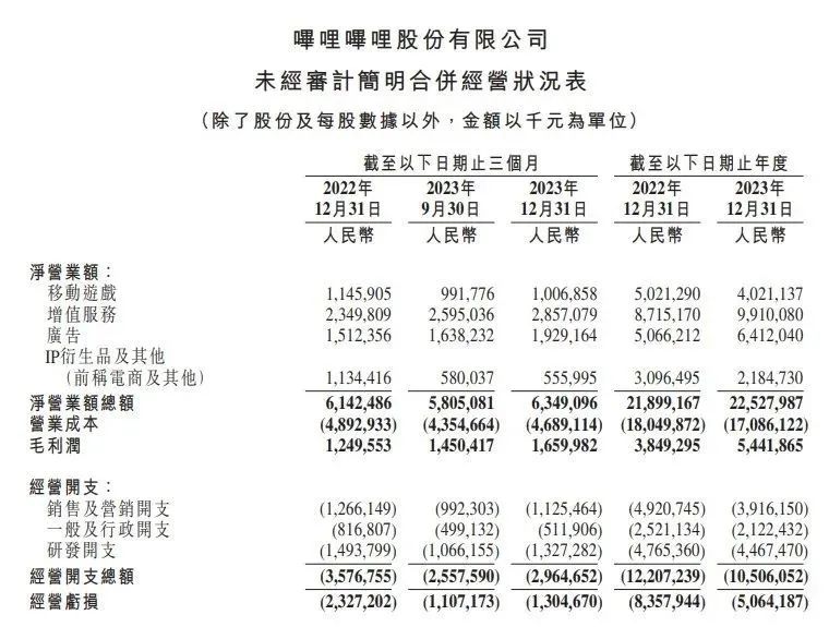 最近,B站向市場遞交了2023年第四季度及全年未經(jīng)審計(jì)的財(cái)務(wù)報告。