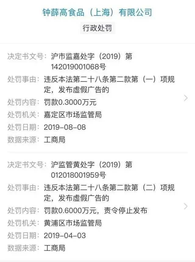 更何況,鐘薛高在生產(chǎn)方面也沒(méi)有表現(xiàn)出誠(chéng)意。2019年鐘薛高就曾因?yàn)樘摷傩麄,受到過(guò)兩次行政處罰。行政處罰決定書(shū)中顯示,鐘薛高涉及虛假宣傳的行為包括:聲稱(chēng)一款輕牛乳冰淇淋不加一滴水,實(shí)際含有飲用水成分;聲稱(chēng)釀紅提雪糕宣傳使用特級(jí)紅提,實(shí)際是散裝紅提;聲稱(chēng)愛(ài)爾蘭陳年干酪雪糕號(hào)稱(chēng)使用的首款頂級(jí)干酪,實(shí)際該干酪未獲任何獎(jiǎng)項(xiàng);聲稱(chēng)雪糕棒簽是嬰兒級(jí)標(biāo)準(zhǔn),實(shí)際只是一般的生產(chǎn)標(biāo)準(zhǔn)……