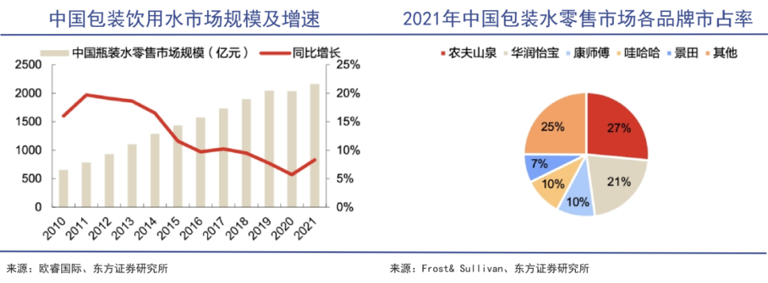 2016年開(kāi)始,農(nóng)夫山泉坐穩(wěn)中國(guó)包裝水市場(chǎng)第一的寶座。與此同時(shí),農(nóng)夫山泉布局的各類(lèi)茶飲、果汁和功能性飲料也逐漸成功,品類(lèi)創(chuàng)新和市場(chǎng)營(yíng)銷(xiāo)能力在業(yè)內(nèi)都是前列水平。