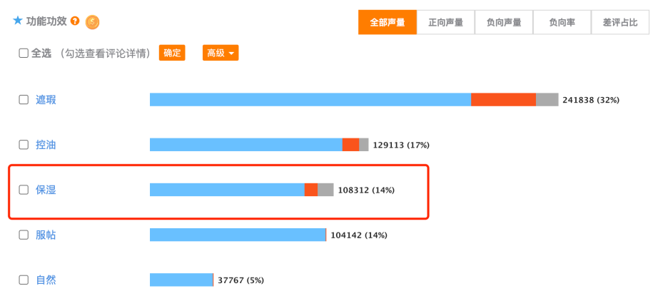 從功效層面來看,消費者不僅要求底妝擁有遮瑕、控油、服帖等功能,魔鏡市場情報數據顯示,2023年1-12月天貓+淘寶和京東消費者對底妝的所有評價中,“保濕”已經成為前三的需求之一。