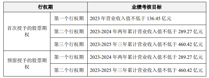 公司授予的股票期權(quán)的行權(quán)安排及公司層面業(yè)績考核目標(biāo)如上表所示,而公司2023年前三季度已經(jīng)完成100億元的營收,只需要在四季度完成36億元即可,而上年同期公司的單季營收已經(jīng)達(dá)到了40億元,這不增反降的股權(quán)激勵,讓人哭笑不得。