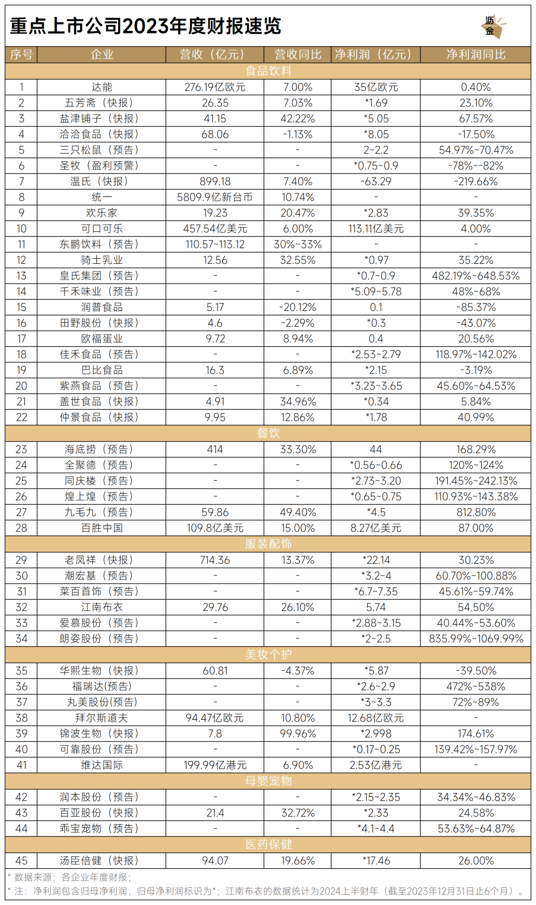 重點(diǎn)食品飲料上市公司2023年度財(cái)報(bào)速覽