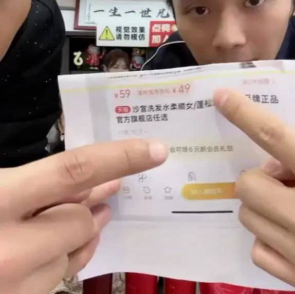 比如此前“瘋狂小楊哥”直播間的主播在銷售一款洗發(fā)水時(shí),給消費(fèi)者出示了某電商平臺(tái)銷售的同款商品的頁面截圖為49元,但這張圖的上半部分被折向后方。