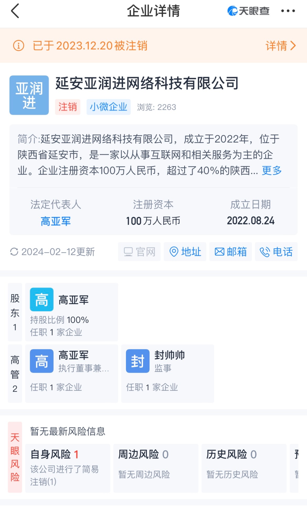 去年曝光后,當(dāng)?shù)厥袌?chǎng)監(jiān)管部門、公安系統(tǒng)以及網(wǎng)信公司第一時(shí)間到達(dá)公司現(xiàn)場(chǎng)調(diào)查處理,并約談該公司相關(guān)負(fù)責(zé)人,后續(xù)該公司于2023年12月20日注銷。